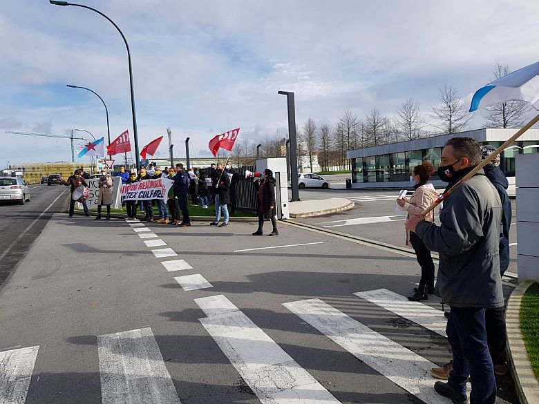 Traballadores e traballadoras das contratas de Inditex volvéronse mobilizar este martes diante da sede do grupo en Arteixo en rexeitamento á precarización das condicións salariais e laborais que a multinacional pretende impor ás súas auxiliares aproveitándose da emerxencia sanitaria.