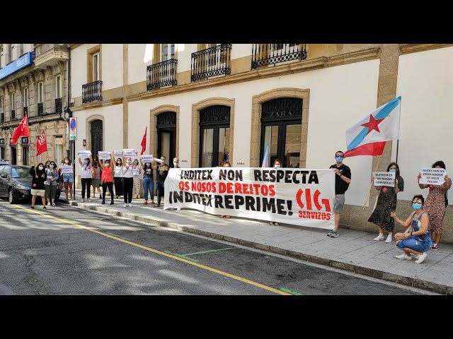Traballadoras/es da empresa téxtil desenvolveron hoxe concentracións en establecementos da Coruña, Vigo, Ourense, Lugo e Santiago