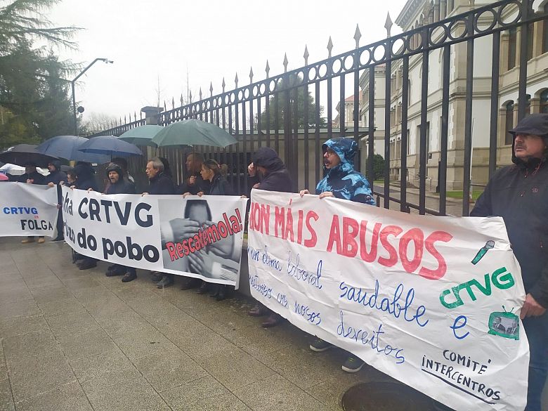 Persoal da CRTVG concentrouse este xoves diante do edificio administrativo da Xunta de Galiza, en San Caetano, coincidindo coa celebración do Consello da Xunta. No decurso da mobilización denunciaron o “secuestro” dos medios públicos por parte do executivo galego e demandaron o seu rescate para os poñer ao servizo das necesidades democráticas, sociais e culturais do noso pobo.