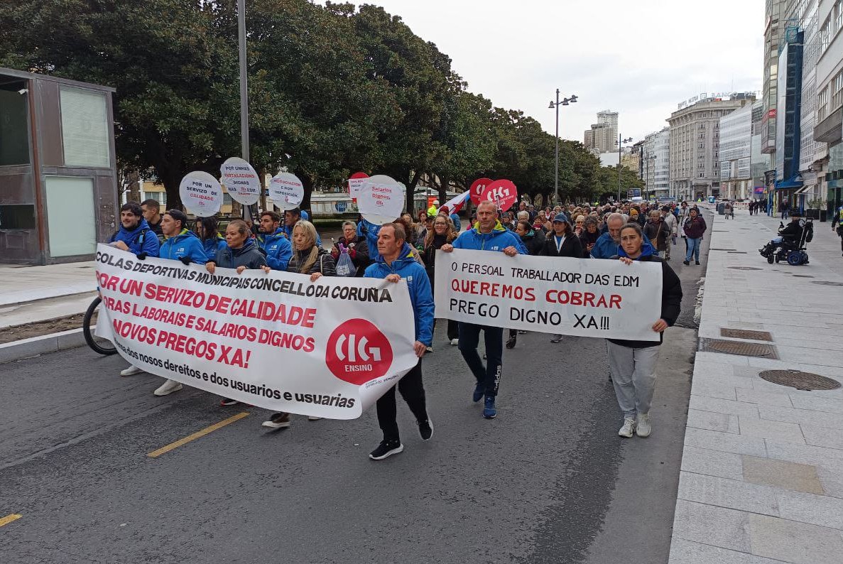 A xornada desenvólvese mentres continúa o proceso de cambio de empresa na xestión do servizo e para darlle visibilidade á súa loita, o persoal saíu en manifestación dende o Pazo de deportes de Riazor até a Praza de María Pita. Ás porta da Casa do Concello fíxose unha concentración e unha sesión de actividades deportivas na que participaron as ducias de persoas usuarias que dende o primeiro momento están apoiando as demandas das traballadoras e traballadores.
