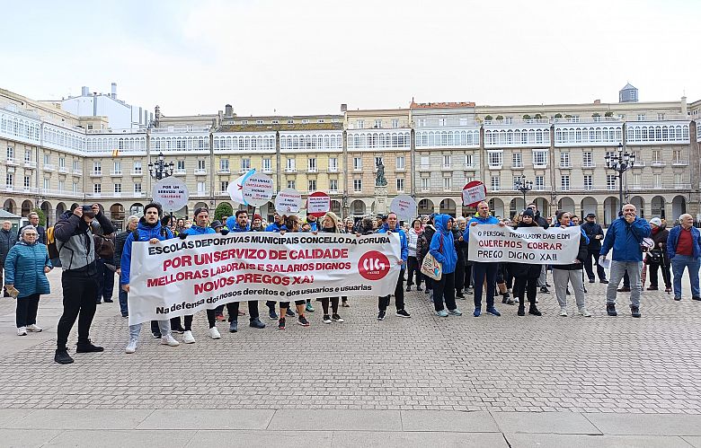 O 100% do persoal está secundando a terceira xornada de folga nas escolas deportivas municipais da Coruña para reclamarlle ao Concello que atenda a táboa reivindicativa e incorpore nos próximos pregos melloras reais nas condicións laborais e salariais. O persoal tamén segue a reclamar o cobro inmediato dos salarios que Serviplus (a empresa que até agora prestaba o servizo) ten pendentes de abonar: a nómina de decembro, a paga extra de nadal e as cantidades correspondentes aos atrasos.